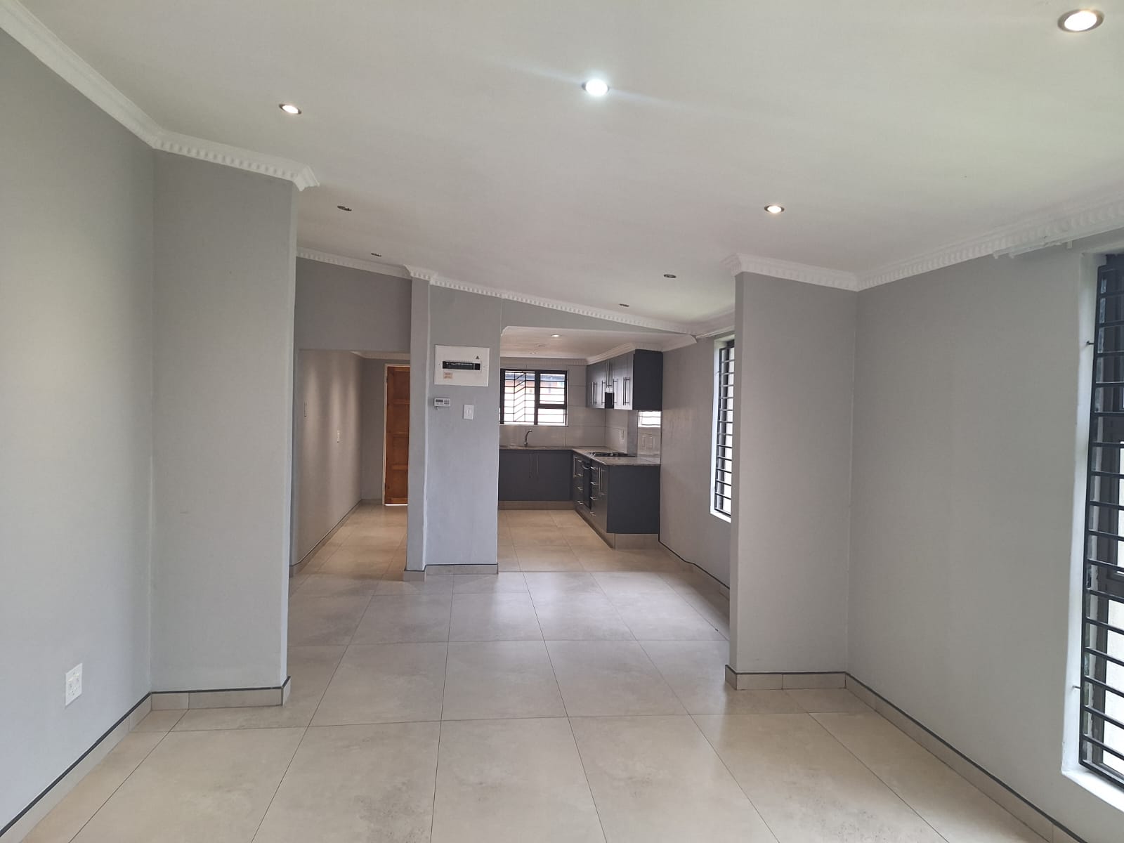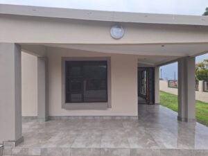 The open-plan kitchen with built-in cupboards flows seamlessly into the lounge and dining area, complemented by fully tiled floors throughout. The property boasts a fully paved and fenced yard for privacy and security, along with 2 carports for convenient parking.
