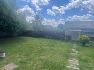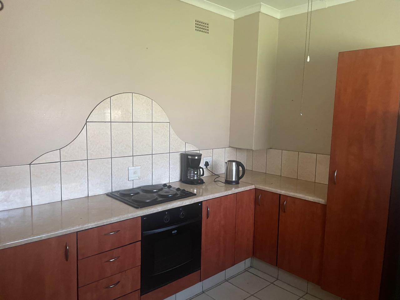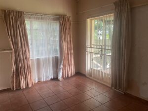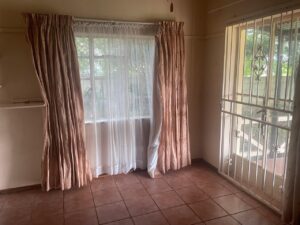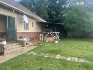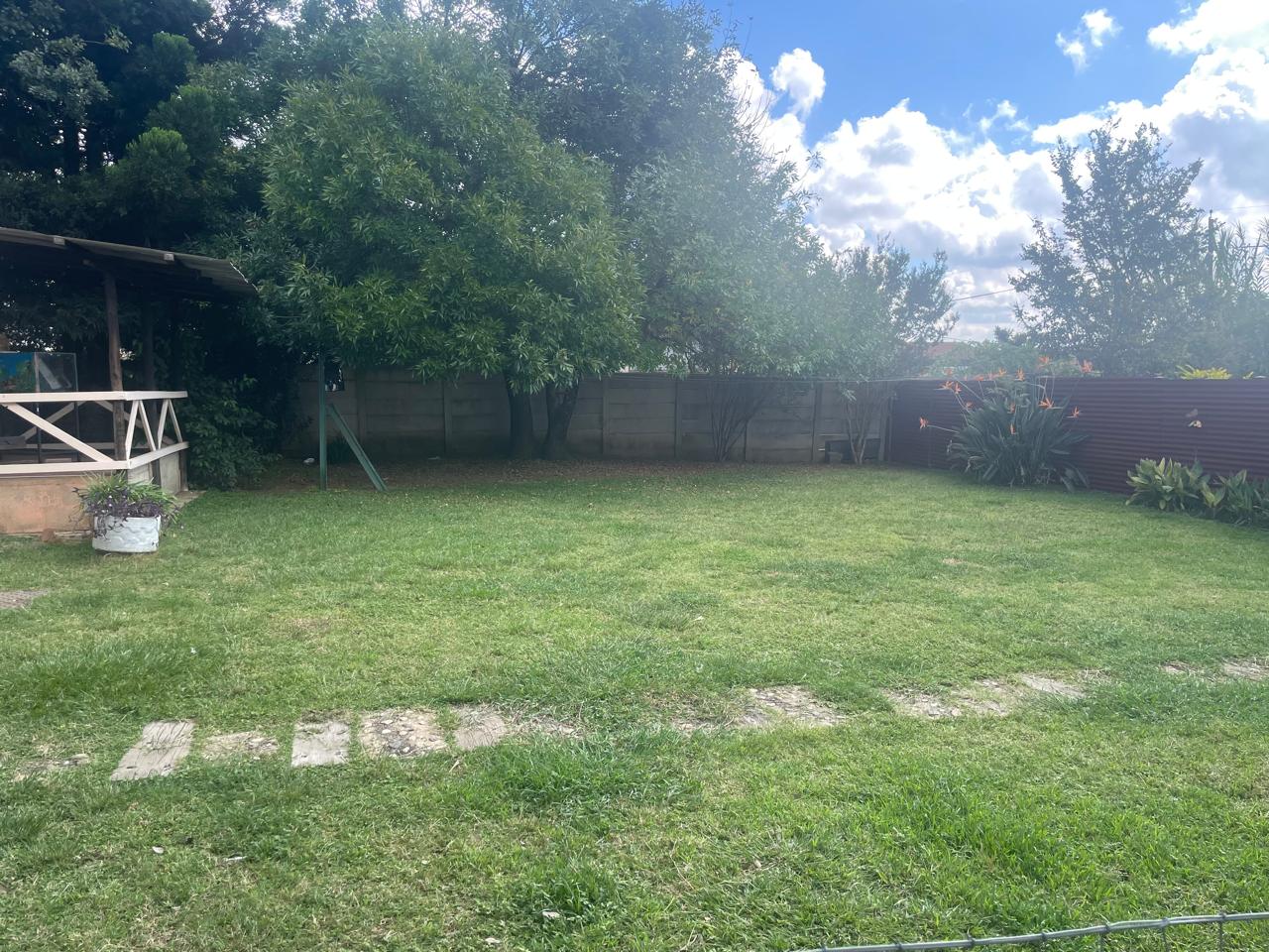 The property is set on a sizeable stand with a large garden framed by mature trees, creating a tranquil and private outdoor environment. A covered patio extends the living space outdoors, making it ideal for braais and social gatherings. Children have ample room to play, while gardening enthusiasts can enjoy cultivating their own green haven.
