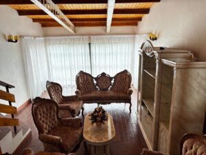 The split-level design features both a TV room and a formal lounge, offering great spaces for relaxing and entertaining guests. The property includes a closed garage with a manual door that can fit two cars, along with prepaid electricity and water for added ease.